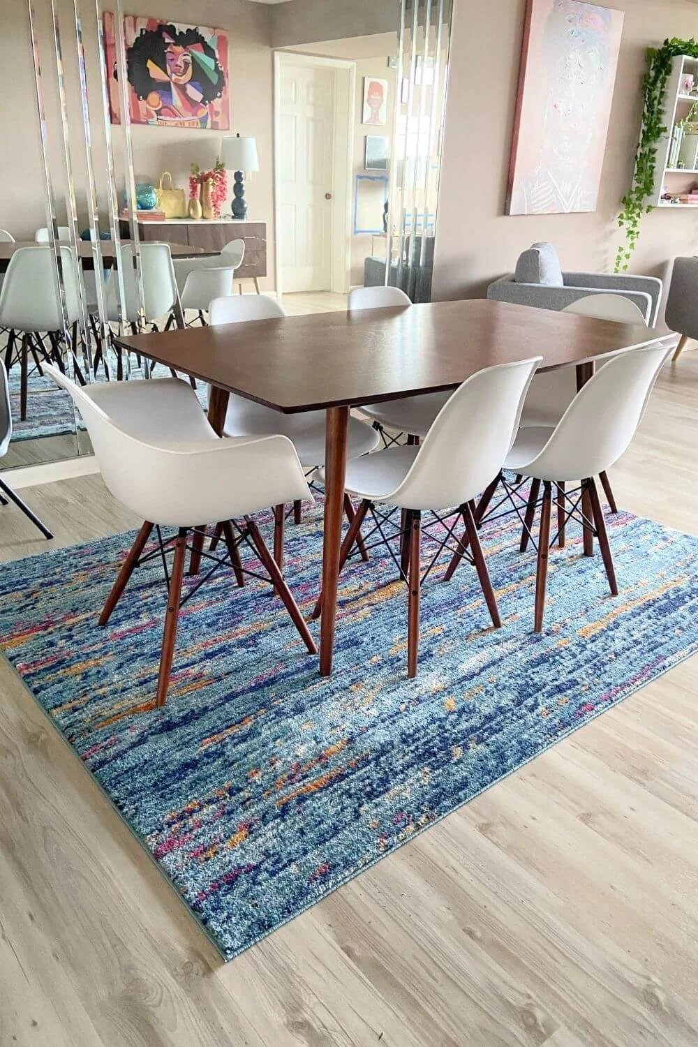 In need of a second area rug to place under my dining room table, I was hoping to find one with a similar color palette to that of the The Parker Fuchsia Area Rug but with a different design. The Hillsby Teal/Garnet Area Rug by Mistana did not disappoint at all! It was until now, writing this post, that I realized that both rugs were from the same brand. The Hillsby is also a low pile rug which makes cleaning it a breeze!