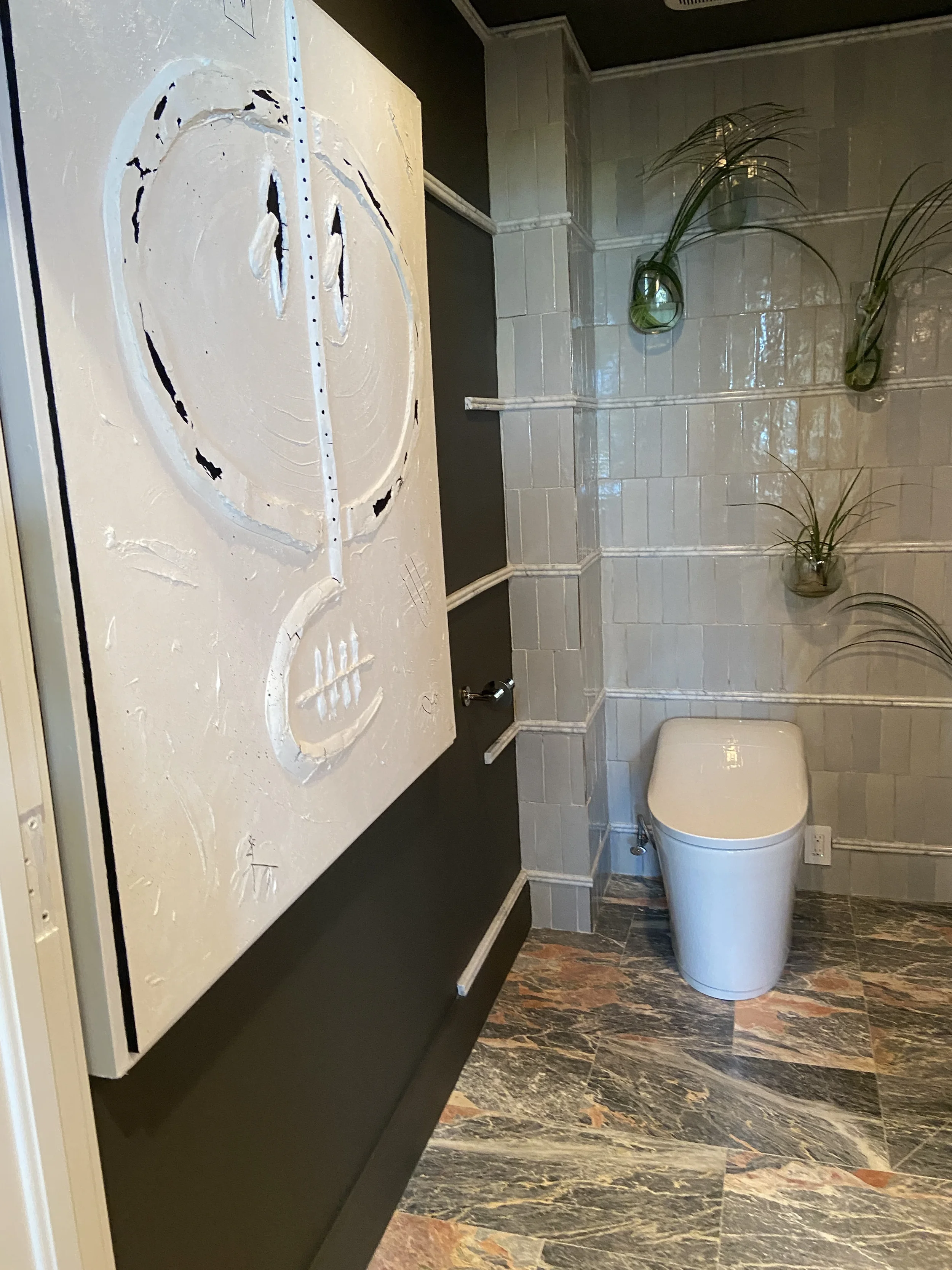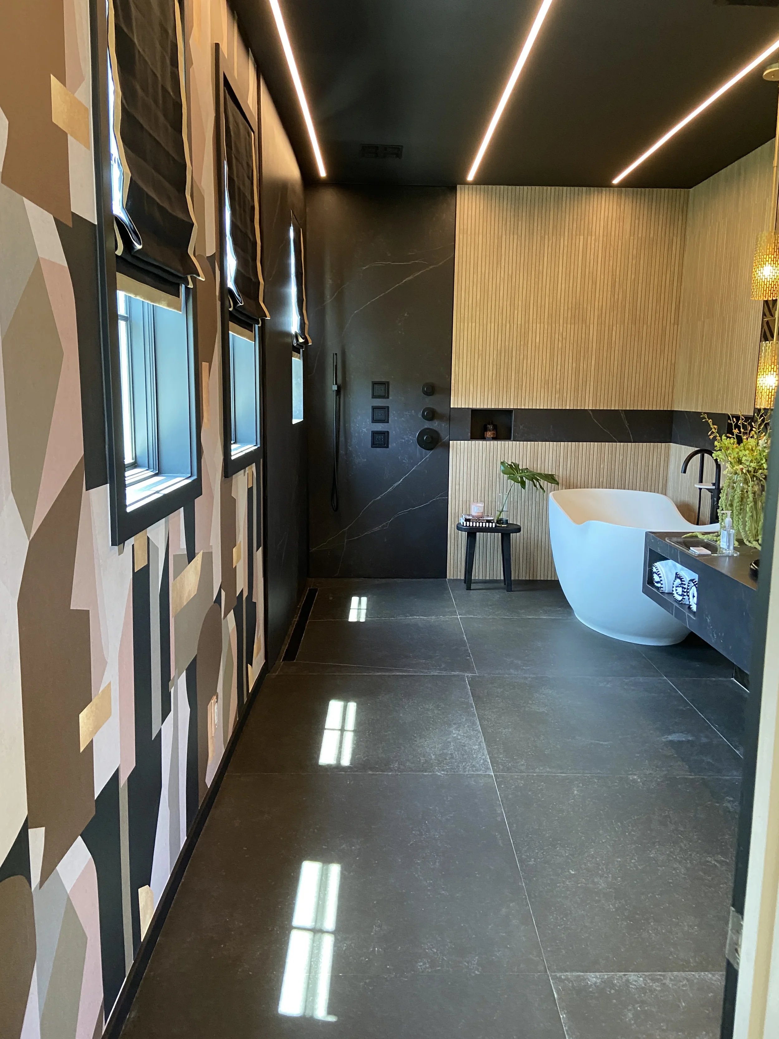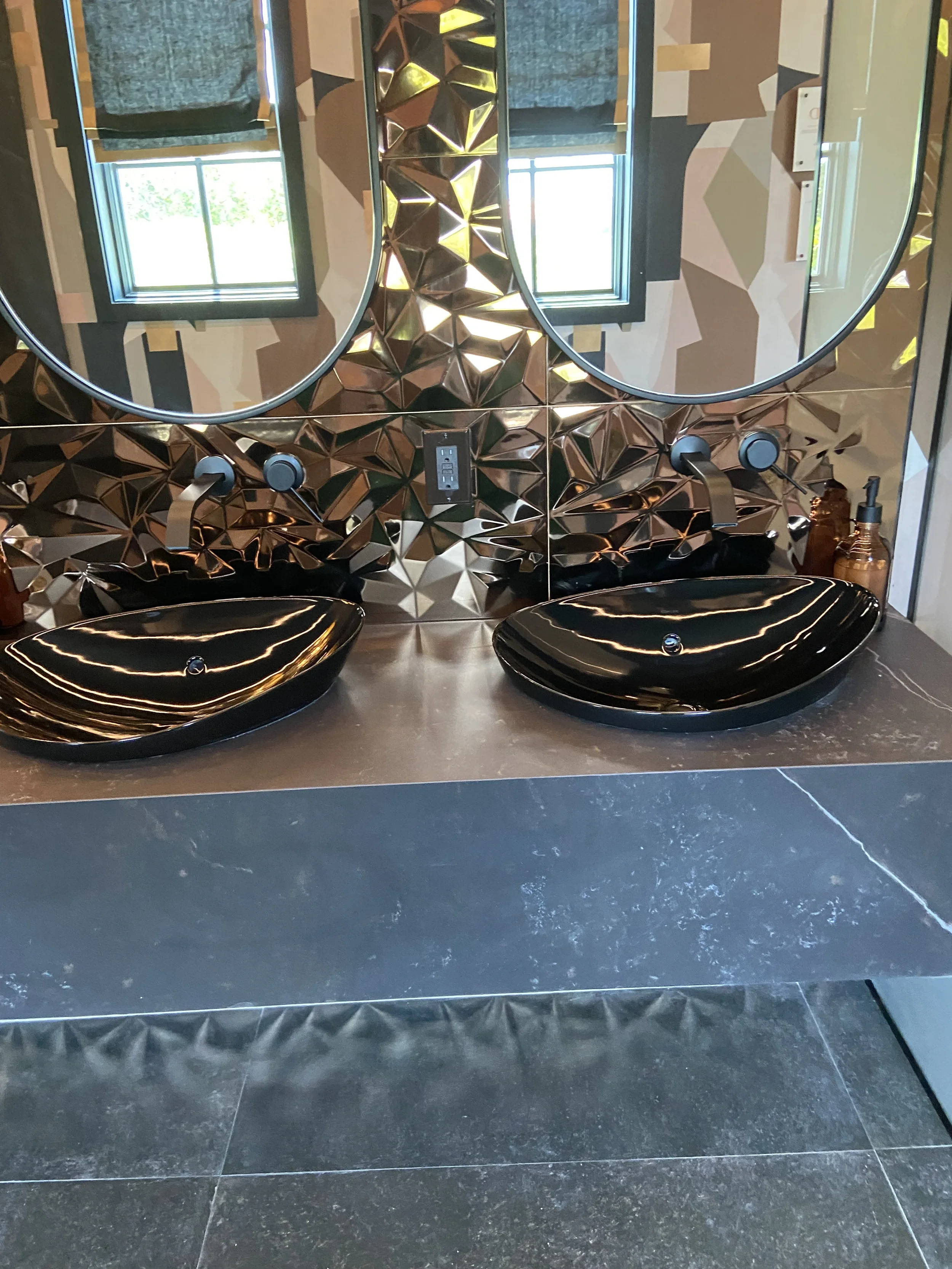 I strongly connected with this bathroom being that, like my living room, was built around one single piece. In the case of my living room, it was an art piece of Cardi B and for Naranjo it was the indigo bathtub. Her goal was for guests to feel swept into an enchanted garden. I think she achieved that and more. I was surprised to learn that most of the items, including the bathtub, are from Kohler. It may be time for me to give that brand a little bit more attention once I get underway with my home renovations.
